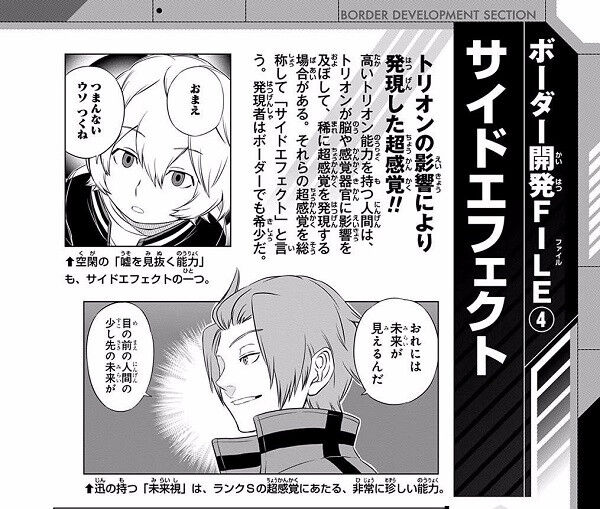 ★【ワートリ】何かサイドエフェクト持ちが意外と出てこないね 2023年02月19日 カテゴリ:トリオン関係サイドエフェクト 160: 名無しのボーダー隊員さん 何かサイドエフェクト持ちが意外と出てこないね 出水とかトリオン量多いのに持って無いのかな? 163: 名無しのボーダー隊員さん 一番下の強化五感でさえ珍しいのかも スナイパー1位2位の当真と奈良坂でさえ特に視力系のSE持ってるわけじゃないし 【★【ワートリ】何かサイドエフェクト持ちが意外と出てこないね】の続きを読む